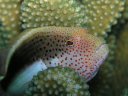 ホシゴンベ Freckled Hawkfish または Blackside Hawkfish |