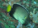 インド洋固有種。Blacktail Angelfishともいう。特に毒があるわけでもなく、凶暴そうにも