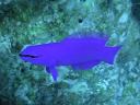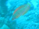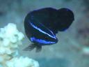 別名Fourline Wrasse。身体全体が濃い青で水色の縦ラインが入って